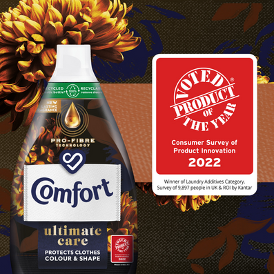 Infused with a luxurious fragrance blend of Sweet Orchid Blossoms, Red Fruit, and Cedarwood, it leaves your laundry with a heavenly scent that lasts long after washing. With sustainability in mind, the bottle is made with recycled plastic (excluding cap, spout, and sleeve) and is fully recyclable once the sleeve is removed. Its ultra-concentrated formula means a little goes a long way, providing lasting freshness and protection with every wash. Trusted in the UK for over 50 years, Comfort continues to care for your clothes so you feel great every day. Cruelty-free.