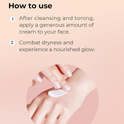 - Apply a proper amount evenly onto the face avoiding the eye area.
