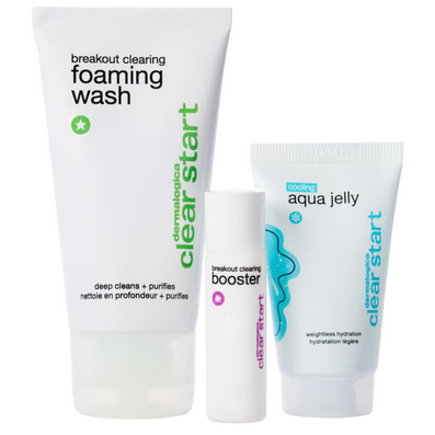 Dermalogica Clear Start Breakout Clearing Kit is a skincare kit containing a trio of products which combine to deep clean and purify the skin, clear breakouts fast, optimise hydration, and calm irritated, acne-prone skin all without clogging pores!