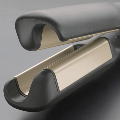 - Curved barrel with floating ceramic plates infused with Macadamia, Argan Oil and Keratin.