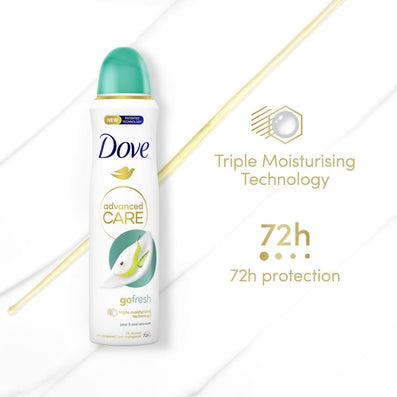 Dove Advanced Care 72h Go Fresh Pear & Aloe Vera Anti-Perspirant Deodorant Spray (200ml) has been formulated with Triple Moisturising Technology to provide 72 hours of protection against sweat and odour.