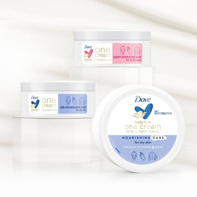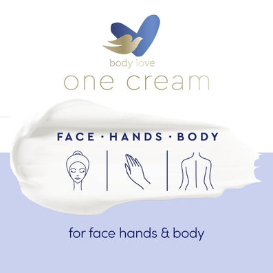 Dove Body Love Nourishing Care One Cream (250ml) is a lightweight, refreshing and quickly absorbed hydrating cream which is light enough for facial use while also delivering an intense boost of skin hydration over your whole body, making it the perfect addition to your head-to-toe skin care routine.