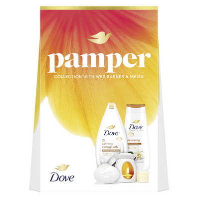 Dove Pamper Wax Burn & Melts Gift Set features a trio of products designed to comfort the senses, containing soft fragrances and caring ingredients to nourish the skin.