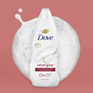 - Reach for Dove Velvet Glow Body Wash when in the bath or shower and apply a dollop to your palms.