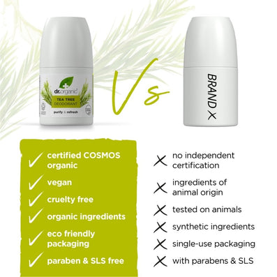 Dr. Organic Tea Tree Deodorant (50ml) is an aluminium-free, non-pore clogging formula designed specifically for oily, problem skin.