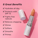 - Wear alone for a natural, moisturised finish or under lipstick for added protection and comfort.