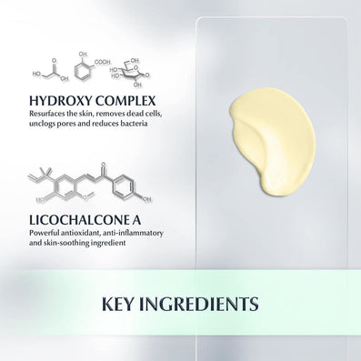 This treatment is formulated using a 10% Hydroxy Complex containing a highly effective combination of peeling agents - Glycolic Acid, Salicylic Acid and Polyhydroxy Acid - which helps to resurface skin, unclog pores, reduce bacteria, remove dead skin cells and prevent new blemishes from appearing. The treatment contains Licochalcone A which has been proven to reduce inflammation and help soothe irritation. The serum supports skin renewal, producing clearer, more even skin. Lightly fragranced, non-comedogenic and non-acnegenic.
