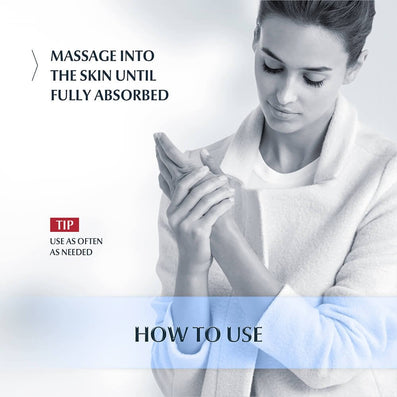 - Gently massage hand cream into hands, until completely absorbed.