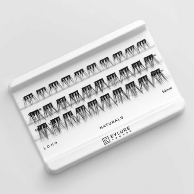 Eylure Salon Clusters Pre-Glued Individual Lash Clusters Naturals Black (x30) offer fuss-free application with no adhesive required, just pick, place and go. These ultra-lightweight pre-glued clusters are ideal for creating a soft, natural look in seconds, perfect for both lash beginners and those seeking a quick, mess-free routine. Designed for above-lash application, the secure pre-glued band applies directly from the tray with lasting hold and comfort.