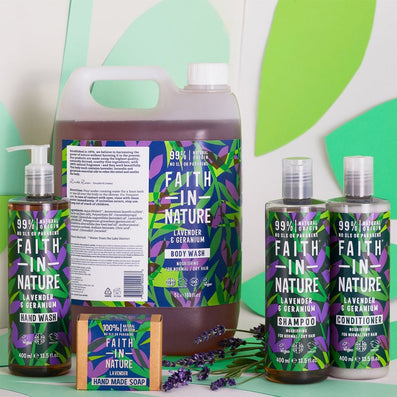 Faith In Nature Lavender & Geranium Body Wash (400ml) is a relaxing, vegan body wash which cleanses gently without stripping the skin of its natural oils.