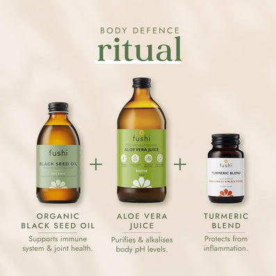 Fushi Organic Fresh-Pressed Black Seed Oil (250ml) is made from 100% pure, organic Fresh-Pressed Black Seed Oil which promotes inner and outer health with antioxidant and mineral support. Taken internally, this oil protects body function, whilst being applied topically, it brightens the complexion and addresses dry, itchy and scaly skin conditions. Its immune-boosting qualities strengthen the immune system and protect the body.