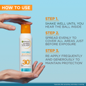 - Reapply frequently and generously to maintain protection, especially after swimming, perspiring, or towelling.