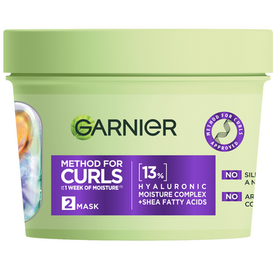 Garnier Method For Curls Hair Mask (370ml) has been specially formulated for curly and coily hair, which often loses moisture due to its delicate spiral structure. Infused with a powerful 13% Hyaluronic Acid moisture complex and nourishing Shea fatty acids, this formula deeply hydrates, smooths, and seals damaged cuticles without weighing hair down.
