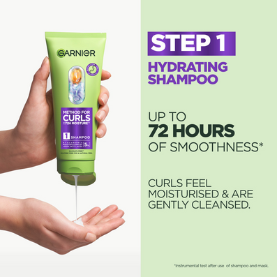 Garnier Method For Curls Shampoo (200ml) has been specially formulated to give curls lasting hydration and definition for up to 72 hours. Enriched with 5% Hyaluronic Acid and Shea Butter, this shampoo deeply nourishes and revitalises curls while maintaining their natural bounce.