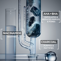 Enriched with Charcoal, a natural purifying ingredient, the serum mattifies skin while leaving no sticky residue or visible trace. AHA gently exfoliates dull and uneven skin, BHA (Salicylic Acid) helps minimise blemishes and the appearance of pores, and Niacinamide soothes and comforts the skin. Dermatologically tested and suitable for all skin types, including sensitive skin, this scientifically proven formula delivers deeply purified, visibly smoother skin after just one use. Dermatologist approved. Cruelty-free & vegan-friendly.