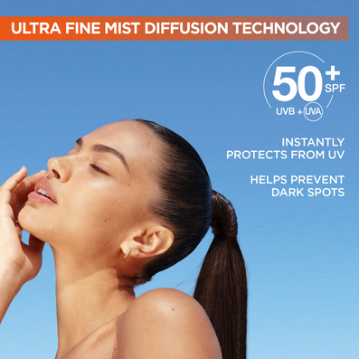 Designed with a convenient touch-free format, this ultra-fine mist can be applied effortlessly over makeup or bare skin anytime, anywhere, without disturbing your look. Its quick-absorbing texture ensures a weightless, invisible finish that blends seamlessly across all skin types and tones, making it the perfect on-the-go solution for continuous daily UV protection and an instant boost of radiance. Dermatologically tested. Cruelty-free & vegan-friendly.