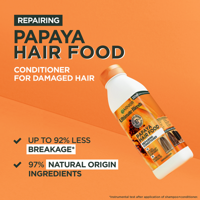 Garnier Ultimate Blends Papaya Hair Food Repairing Conditioner (350ml) is designed to deeply repair and nourish damaged hair. Enriched with Papaya and Coconut extracts, this conditioner helps reduce hair breakage by up to 92% in just one use.