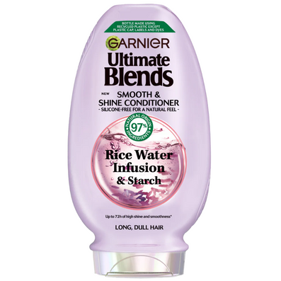 - Conditioner - after washing with Garnier Ultimate Blends Rice Water Infusion Shampoo, apply to lengths and ends. Massage gently into the hair. Rinse thoroughly.