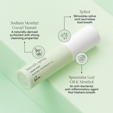 Gem Breath Spray Crisp Mint (9ml) is a compact, on-the-go spray that delivers instant freshness while supporting your oral health with antibacterial and anti-inflammatory benefits. With just one or two pumps, it provides a clean, minty burst that neutralises bad breath fast and promotes long-lasting confidence.