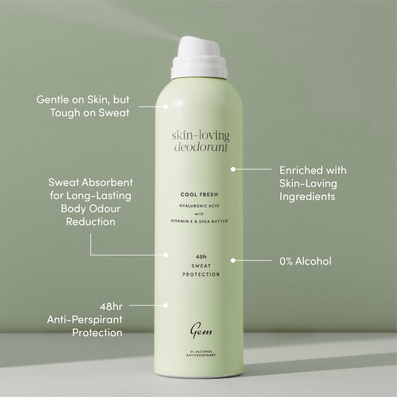 Gem Skin Loving Deodorant Spray Cool Fresh (200ml) is a gentle yet effective deodorant designed to keep you feeling fresh, dry, and confident for up to 48 hours.