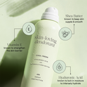 Enriched with Hyaluronic Acid, Shea Butter, and Vitamin E, this skin-loving formula not only fights odour but also nourishes and hydrates, leaving skin soft, smooth, and comfortable. The crisp blend of Sicilian lemon and rich cedarwood creates a refreshing, invigorating scent that lingers delicately throughout the day. Free from alcohol and parabens. Cruelty-free & vegan-friendly.