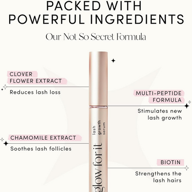Glow For It Lash Growth Serum (3ml) is a peptide-powered lash serum designed to promote naturally longer, fuller and healthier lashes. By nourishing and strengthening hair follicles, it encourages visible growth without the use of prostaglandin analogues, making it a safe and gentle alternative for everyday use.