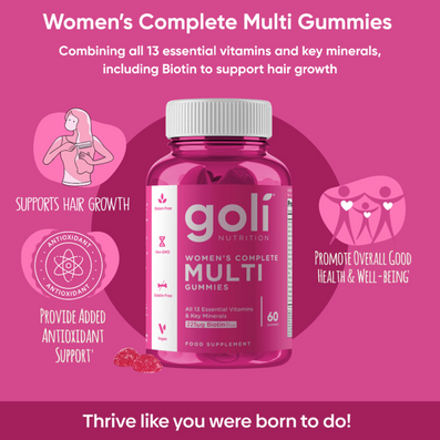 Goli Nutrition Women's Complete Multi Gummies (x60) include a complete formula designed to support your overall health and vitality. Packed with all 13 essential vitamins and key minerals, including Zinc, Selenium and Chromium, this supplement delivers a total of 18 vital nutrients to help you thrive.