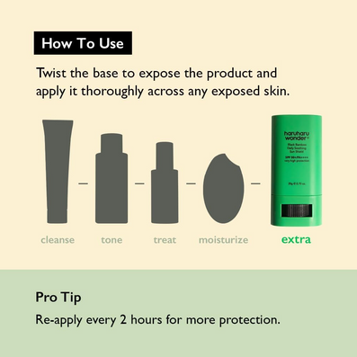 - As the last step of your skincare routine, twist the base to expose about 0.5cm of the stick and swipe it thoroughly across any exposed skin, including face, neck and shoulders.
