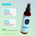 Enriched with Argan Oil, this spray restores condition, optimises hydration and enhances elasticity. Controlling frizz and flyaways, the spray provides heat protection up to 205°C. Additional key ingredient Pro-Vitamin B5 locks in moisture to develop brilliant shine, reduce the potential for damage and make strands more elastic. This spray exudes delightful Orange and Lemon fragrance notes. Free from sulphates, parabens, phthalates, silicone, gluten, drying alcohol and artificial colours. Colour safe. Cruelty-free & vegan-friendly.