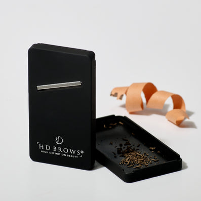 HD Brows Pro Shaper is a safe, easy-to-use pencil sharpener which produces a flat, ultra-fine tip on the HD Brows Pro Pencil. The sharpening blade is housed safely within a black box which conveniently collects all the shavings. Cruelty-free.