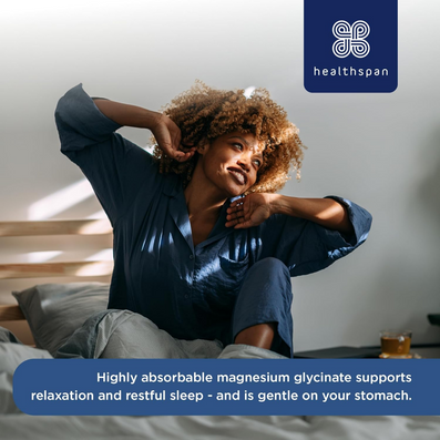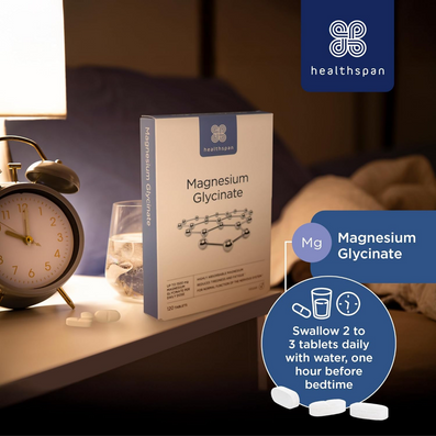 Healthspan Magnesium Glycinate 1500mg (120 Tablets) contains up to 1500mg Magnesium Glycinate to help you unwind at bedtime, reduce tiredness and fatigue, and maintain normal muscle and psychological function, while being gentle on your stomach.