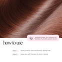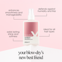 - After washing, spray liberally over sectioned, damp hair and blow dry with heat and tension to achieve a smooth, sleek finish.
