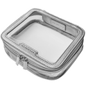 - 1 x Justmylook Cosmetic Travel Bag Silver - a sleek and practical storage solution designed to keep your beauty essentials organised in style. This compact yet spacious case features a transparent panel that makes it easy to see your products at a glance, while the metallic gold trim adds a touch of elegance to your everyday routine. Crafted with a durable zip fastening, it securely holds makeup, skincare or travel essentials, making it perfect for on-the-go use. Whether packed in your handbag, luggage, or used at home to keep your collection tidy, this versatile cosmetic bag combines function with a chic, modern design.