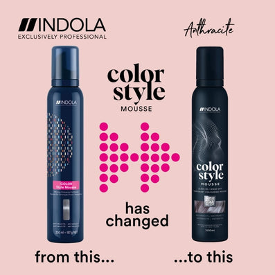 Indola Colour Style Mousse Anthracite (200ml) is a temporary leave-in hair colour with a natural styling hold factor. This unique formula not only offers colour refreshment, toning, pre-pigmentation, and neutralising unwanted tones but also protects hair from thermal styling damage. This mousse enriches and intensifies natural hair colour, effectively masking early signs of greyness and providing a conditioning effect.
