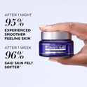 After one night, the skin feels intensely hydrated, smoother and more supple, with a stronger moisture barrier in as little as one hour. Within seven nights, it visibly improves fine lines, wrinkles, dryness, dullness and loss of firmness for a refreshed, radiant complexion. The velvety, cushiony texture, enhanced by Memory Bounce Technology, envelops the skin without transferring to your pillow, ensuring full absorption of its skin-loving benefits. Lightly scented with calming Lavender, it transforms your evening routine into a restorative, sensorial experience. Free from mineral oil, parabens, phthalates and drying alcohols.
