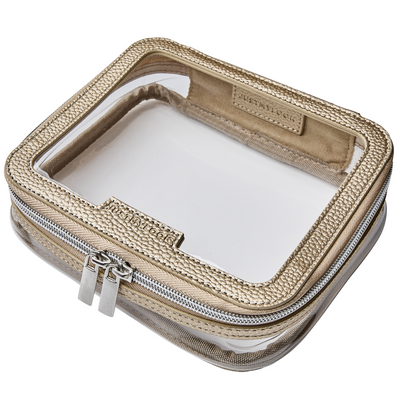 Justmylook Cosmetic Travel Bag Gold is a sleek and practical storage solution designed to keep your beauty essentials organised in style. This compact yet spacious case features a transparent panel that makes it easy to see your products at a glance, while the metallic gold trim adds a touch of elegance to your everyday routine.