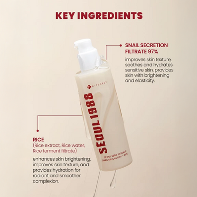 K-Secret Seoul 1988 Essence: Snail Mucin 97% + Rice 100ml