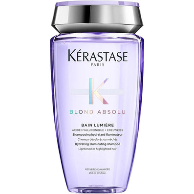 - 1 x Kérastase Blond Absolu Bain Lumiere Hydrating Illuminating Shampoo (250ml) - a hydrating, illuminating shampoo for lightened, highlighted or grey hair which gently cleanses each fibre, leaving the hair light and luminous. Soothing and hydrating from root to tip, it creates a lightweight texture and brightens blond tones. Formulated with Edelweiss Flower Extract, it is rich in antioxidants, protecting the hair from pollution and removes dulling agents. Hyaluronic Acid deeply hydrates the hair, strengthening fibres to prevent breakage. Ultra-Violet Pigments neutralise and remove brassy & yellow undertones, revealing a radiant natural shine.