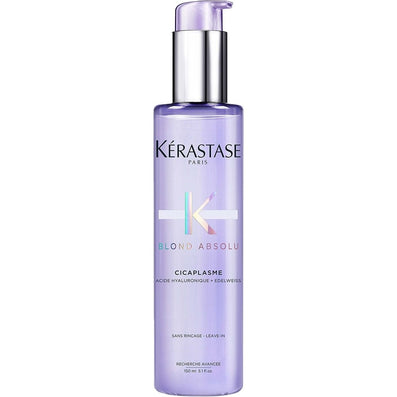 - 1 x Kérastase Blond Absolu Cicaplasme Leave-In Cream (150ml) - a lavender-coloured, fortifying leave-in cream for use on lightened, highlighted and sensitised hair. It intensively nourishes the hair fibre, sealing split ends and producing long-lasting frizz control. Formulated with Edelweiss Flower Extract, it is rich in antioxidants, protecting the hair from pollution and removing dulling agents. Hyaluronic Acid deeply hydrates the hair, strengthening fibres to prevent breakage and facilitating detangling from roots to ends. Formulated with thermal protection up to 230°C, it can be heat-styled, although primarily intended for air-drying.