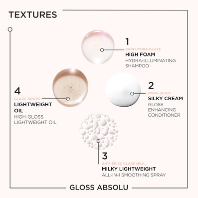 Kérastase Gloss Absolu Complete Regimen brings together the full collection of products from Kérastase's Gloss Absolu range, each expertly formulated to deeply hydrate and enhance the hair's natural shine and vibrancy.