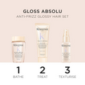 Kérastase Gloss Absolu Discovery Set offers the perfect introduction to the Gloss Absolu routine, bringing together three essentials to experience professional shine and care at home. Infused with Hyaluronic Acid, Glycolic Acid, and Wild Rose Oil, this discovery trio cleanses, nourishes, and protects while enhancing hydration and long-lasting frizz control.