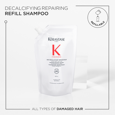 Kérastase Première Bonding Advanced Repairing Shampoo Refill Pouch (500ml) acts as the second step in the premiere hair care regime, formulated to cleanse and deliver advanced repair to all levels of damage for all hair types, restoring the hair to 99% of its original strength*. This includes damage from heat styling, over-processing, colour treatment, bleaching, and even water in your shower. With continued use, 95% of women agree hair looks radically healthy.***