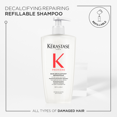 Kérastase Première Bonding Advanced Repairing Shampoo Refillable Bottle (500ml) acts as the second step in the premiere hair care regime, formulated to cleanse and deliver advanced repair to all levels of damage for all hair types, restoring the hair to 99% of its original strength*. This includes damage from heat styling, over-processing, colour treatment, bleaching, and even water in your shower. With continued use, 95% of women agree hair looks radically healthy.***