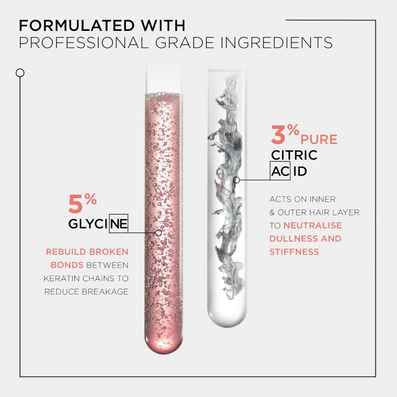 Formulated with a concentration of 8% Pure Citric Acid and Glycine, this pre-shampoo acts on both the inner & outer hair layers to neutralise dullness and stiffness. The formula rebuilds broken keratin bonds to reduce breakage. With its transparent gel texture, the pre-shampoo dives deep to help repair persistent damage. Hair is left stronger**, healthier-looking, with up to 75% more shine.***