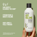 KMS Add Volume Shampoo (300ml) has been formulated for use on straight to coily hair to increase volume by up to 70% in combination with Add Volume styling products. It effectively strengthens fine, limp hair, making it look and feel thicker.