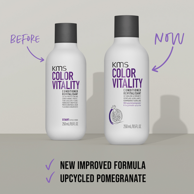 KMS Colour Vitality Detangling & Vibrancy Conditioner (250ml) is a newly-formulated, sulphate-free conditioner which facilitates combing, increases shine, prevents colour fade and restores natural protective power in straight to curly hair, weightlessly hydrating to ease detangling fourfold. Sealing in colour and protecting the vibrancy of colour-processed hair, it effectively maintains colour for up to 20 washes.