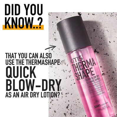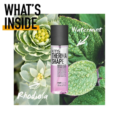 KMS Therma Shape Quick Blow Dry (200ml) is a light conditioning blow dry spray for straight to coily hair which reduces drying times by up to 50% and reduces friction.