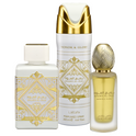 Lattafa Bade'e Al Oud Honor & Glory Eau De Parfum Gift Set (100ml) is a luxurious unisex collection that brings together the bold and opulent fragrance with complementary grooming and layering essentials.