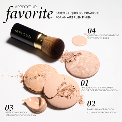 Laura Geller Retractable Airbrush Kabuki Brush is a multi-functional, expertly crafted tool designed to deliver a flawless, airbrushed finish with ease. Featuring densely packed, ultra-soft bristles and a high bristle count, this brush ensures smooth, even application of cream, liquid and powder foundations without streaking or shedding. The rounded shape makes it ideal for buffing, blending and building coverage, adapting seamlessly to your preferred technique.