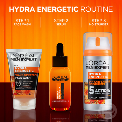 L'Oreal Paris Men Expert Hydra Energetic Anti-Fatigue Wake-Up Effect Face Wash (100ml) is a daily face wash which has been specially formulated to cleanse and energise men's skin, giving it a refreshed and revitalised look.